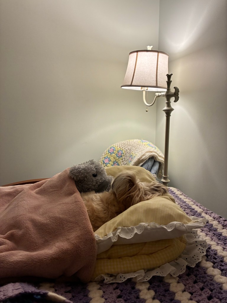 During COVID-19, I bought a $3,000 Pom-A-Chon to support my feelings and she still is to this day. She is so cute. She has Costumes and a Canada Pooch. And she loves Hartz Oinkies. We are about to start her on the Purina Puppy Pro Plan. She wishes all children a beautiful and safe good night sharing with them “All My Life’s a Circle,” by Harry Chaplin.